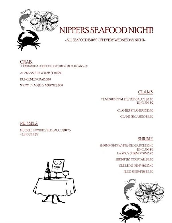 Hungry? Nippers serves up everything from fresh sea food to whole pizza pies, subs and burgers. We're sure it will be love at first bite! Plus, we offer great daily specials.